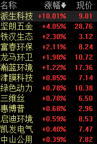 盘面上,垃圾分类板块今日冲高回落,派生科技涨停,坚朗五金涨超4%,铁汉生态、富春环保涨超2%,龙马环卫、瀚蓝环境、绿色动力、三维丝等均有一定的涨幅。