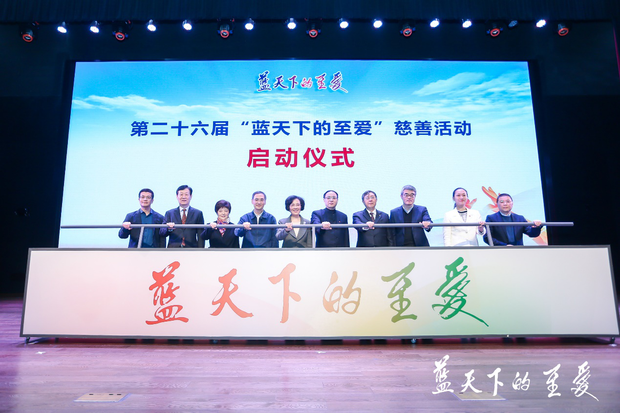 启动仪式上,上海市慈善基金会理事长钟燕群、原理事长冯国勤、监事长顾国林,上海市志愿服务公益基金会理事长陈振民,上海市儿童基金会理事长王禄宁,上海市红十字会副会长程国梁,上海市老年基金会副理事长徐文雄,团市委副书记史逸婵,市文明办志愿服务工作处处长汪曙光,上海市残疾人福利基金会常务副秘书长倪定,共同启动了第二十六届“蓝天下的至爱”慈善活动。