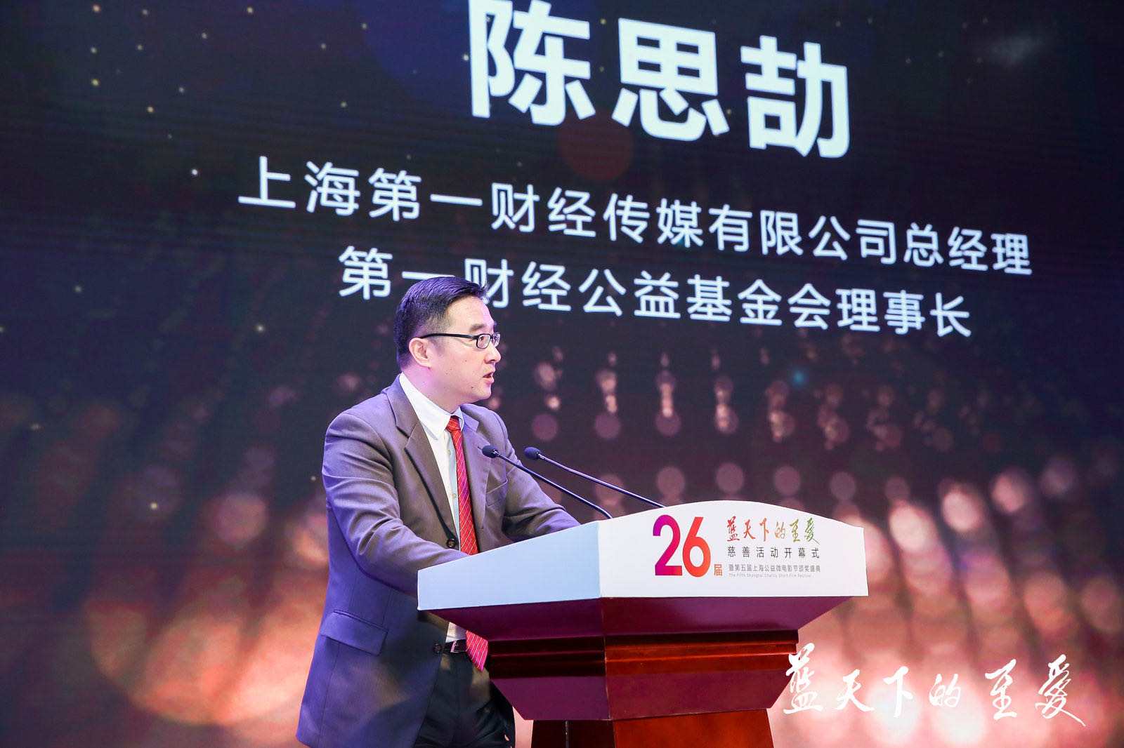 颁奖典礼现场,上海市慈善基金会副理事长王伟,上海第一财经传媒有限公司总经理、第一财经公益基金会理事长陈思劼先后致辞,评委会主席张建亚介绍本次评选的整体情况。