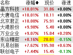 12月5日,集成电路板块午后一路冲高,截至发稿,晶方科技、大唐电信、北京君正、大港股份涨停,万业企业、东山精密等个股跟涨。
