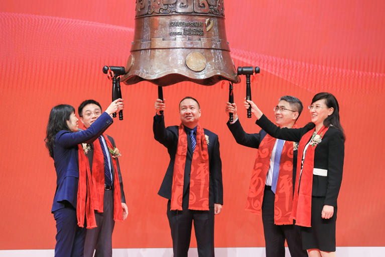 12月5日上午9时30分,伴随着响亮的敲钟声,华夏饲料豆粕期货ETF在深圳证券交易所上市交易,成为境内首只挂牌上市的商品期货ETF,为投资者提供了资产配置和抗通胀的全新工具。大连商品交易所副总经理王玉飞、华夏基金总经理李一梅、大连商品交易所清算部总监胡刚旭、中信期货总经理方兴、华泰期货副总裁王强共同为豆粕ETF上市敲钟。