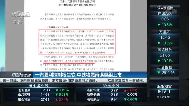 昨天晚间,一汽夏利公告称,中国铁路物资股份有限公司或将取得一汽夏利控制权,一汽夏利还将收购中铁物晟科技发展有限公司控股权,预计在不超过10个交易日的时间内披露此次交易方案。