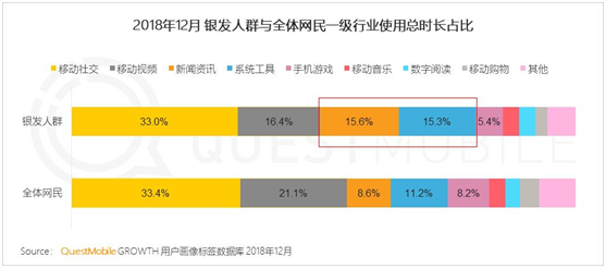 头条篇:来自QuestMobile的数据显示,老年人在新闻资讯领域时长占比超过15%,是全体网民的1.8倍,他们在浏览器、搜索等系统工具领域的时长占比也明显高于全体网民。BUT,你以为老年人真的这么热爱阅读新闻?十个老年人八个老花的他们还在努力汲取讯息,都得归功于各种X头条的app,看新闻还有钱赚,此等福利不能错过,顺便还能发表慷慨激昂的留言;
