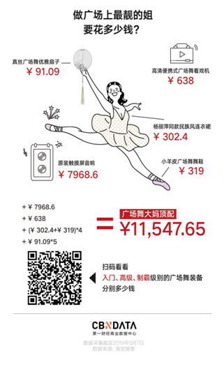 细节也就不多说了吧,就看下CBNData以广场舞各品类商品最高价计算出的广场舞顶配花费吧——