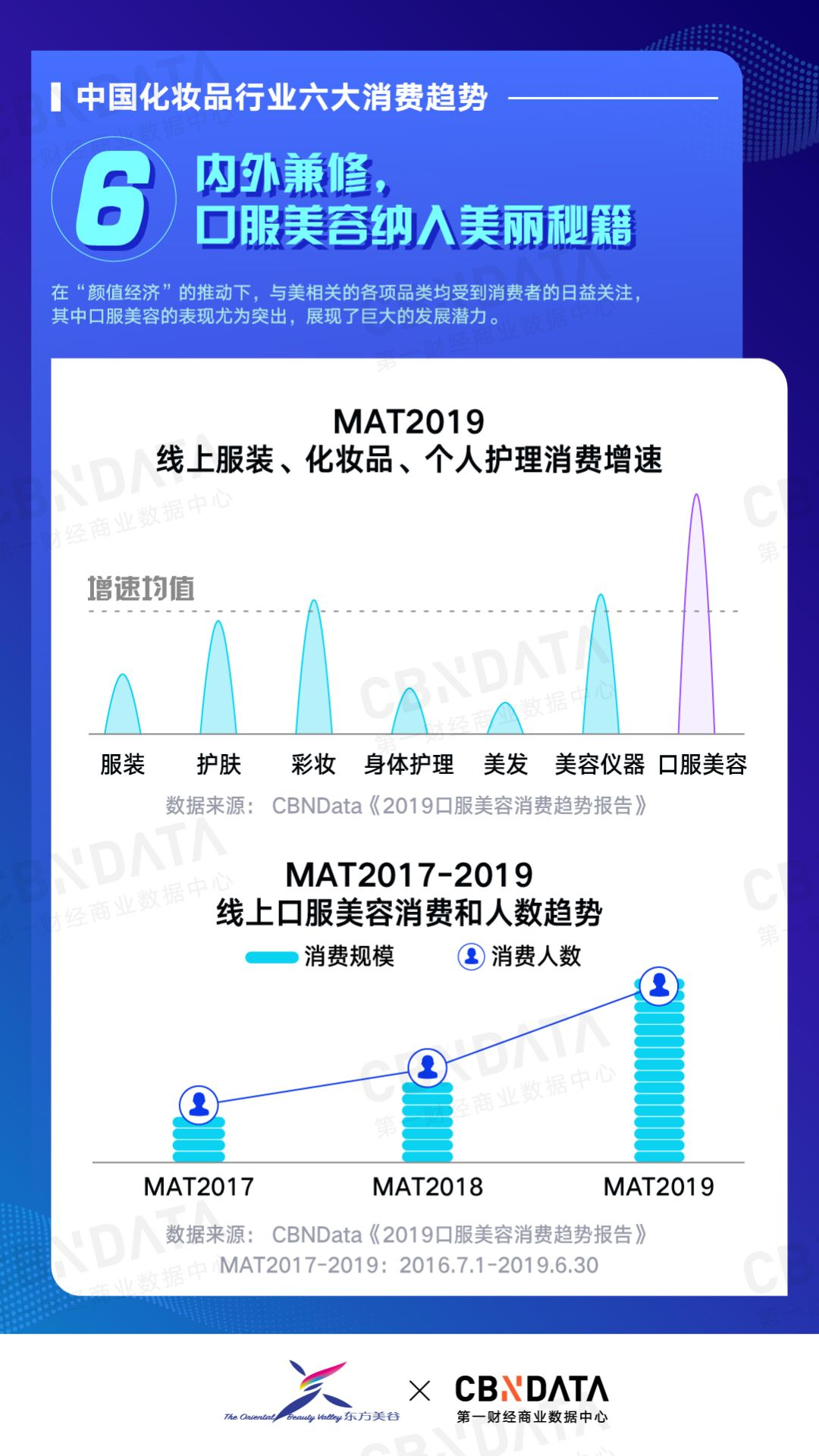 同时,根据CBNData x 东方美谷 x 如新中国《2019东方美谷蓝皮书(化妆品行业)》显示,口服美容需求多样化,小众如补水、防脱在线上也有一定量的诉求;而美白和抗衰老则是使用口服美容人群最核心的需求。