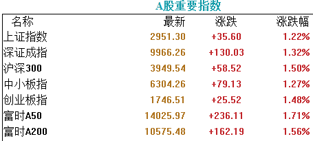 富时中国A50指数期货开盘涨1.2%,上一交易日夜盘收涨0.85%。