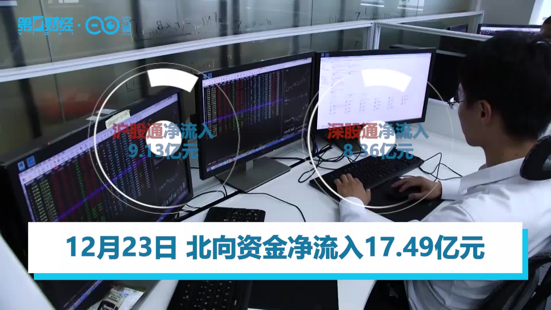 12月23日,北向资金净流入17.49亿元,其中沪股通净流入9.13亿元,深股通净流入8.36亿元。