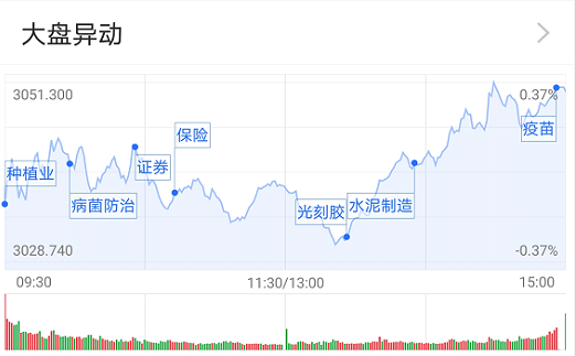 今年最后一个交易日,开盘种植板块表现强势,随后生物疫苗等概念指数拉升,医药板块领涨大盘,昨天大涨的券商板块迎来回调。午后钢铁板块跳涨,建材、建筑板块等各板块逐渐走强,三大指数随之冲高,最终集体收涨。