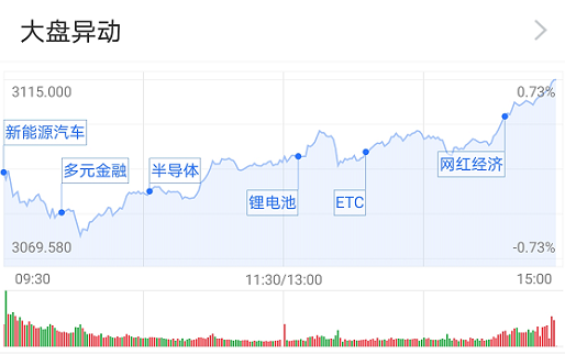 沪指收复3100点,芯片股大涨,新能源车产业链概念继续火爆!