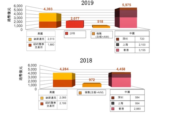 2019年,香港有184家新股上市活动,以总集资额3155亿港元在全球IPO中蝉联第一,并且已经是连续七年挤身全球三甲。不过,这是第四季度迎来阿里巴巴回归才实现的逆风翻盘,2020年港交所能否蝉联冠军仍存疑问,但各大机构也预计港交所仍有望保持前三,普华永道则预计2020年全年总集资额可达2300亿至2600亿港元。