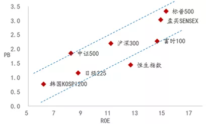 全球主要股指PB(倍)和ROE(%)中位数
