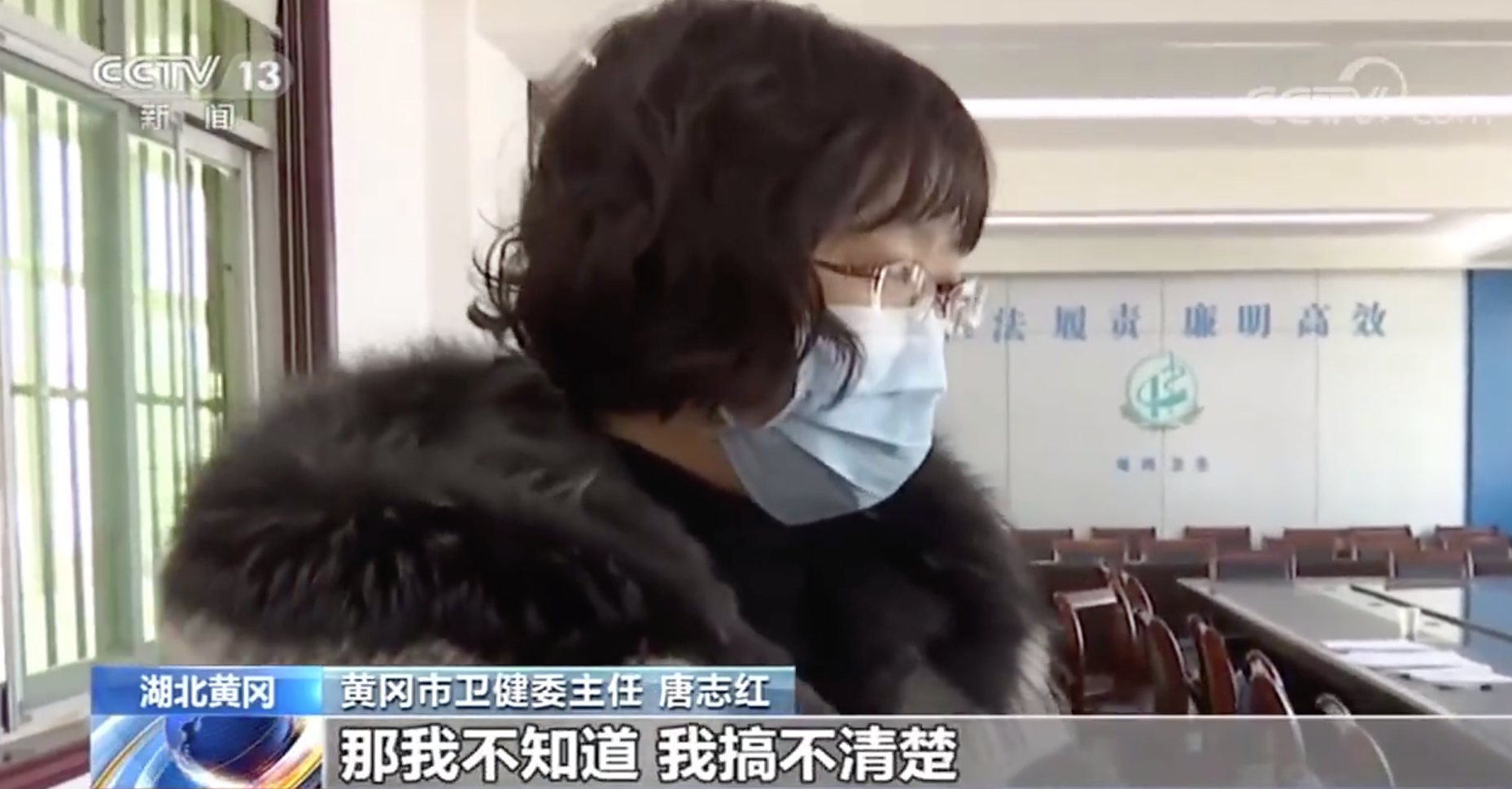 此前,据央视报道,1月29日,中央指导组派出督查组,赶赴黄冈市进行督查核查。当问到定点医院收治能力床位数量、核酸检测能力时,唐志红作为黄冈卫健委主任要么沉默,要么含糊其辞,一问三不知。