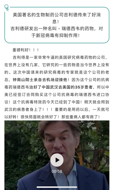 瑞德西韦在美国治愈1位患者属于个别案例报道,有关吉利德公司的瑞德西韦在国内应用于新型冠状病毒感染肺炎的治疗,目前正由中日友好医院曹彬教授团队进行临床试验,疗效仍待观察。