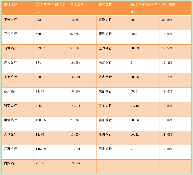 (第一财经根据上市银行2019年业绩快报整理)