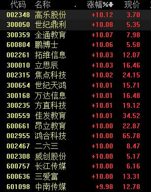近日,疫情之下“停课不停学”,让沉寂已久的在线教育迎来大爆发。截至今日收盘,该板块全线上涨,其中,高乐股份、世纪鼎利、全通教育、鹏博士等21股涨停,其余个股纷纷跟涨。有专业机构表示,在目前整体大环境不明朗的情况下,教育行业有望成为消费行业避风港。