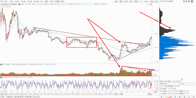 2,市场不讲道理,没有调整选择连续逼空,一步到位,即现在这个位置直接冲破2200放天量。