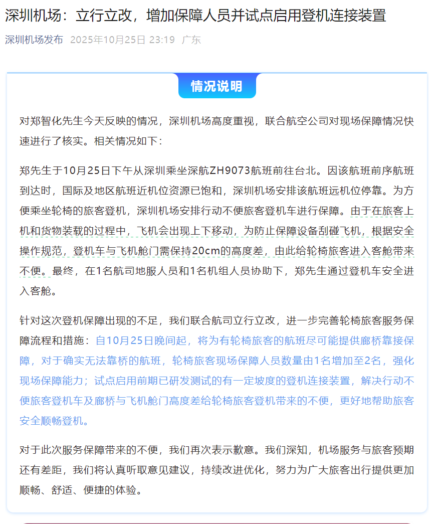 歌手郑智化吐槽“连滚带爬进飞机” 深圳机场回应:立行立改
