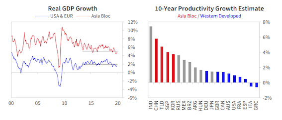 桥水认为,相比发达国家的零利率、低迷的经济状况和民粹主义倾向,新兴亚洲经济体则情况不同,他们近期表现出的增长率更高,而未来的生产率增长、利率和资产收益率都会更高。