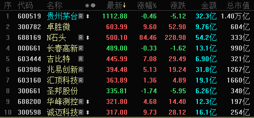 成交额方面,截至收盘,科创板个股合计成交额达327.99亿元,较上个交易日有所放大。值得注意的是,从A股两市成交额来看,两市全天成交合计11710.34亿元,成交额连续三天突破万亿。石头科技、神工股份、百奥泰、华峰测控(688200.SH)成交额均高于10亿元,成交额不到1亿元的科创板个股有10家。