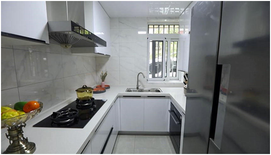 ☑希望厨房操作台为U型,并且能放下双开门冰箱;