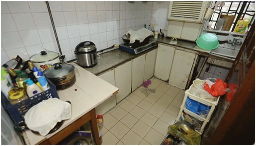 厨房内的橱柜破损严重,由于通风效果不佳导致厨房长年弥漫着油烟味;另外L型的操作台也无法满足李先生的烹饪需求。