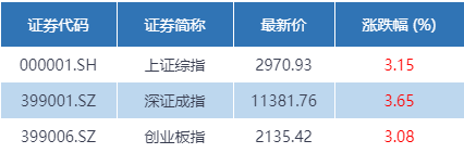 A股今日三大指数均大涨超3%,各行业板块多点开花,全线收红。