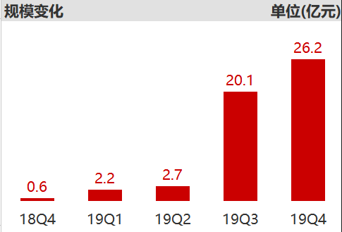 Wind数据显示,该基金在去年收益率达99.88%,今年以来截至3月6日收益率已超17%。从其规模变化来看,去年下半年开始突然暴增,相比去年中的2.7亿骤增近25亿,增幅达8.7倍。