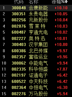3月11日,充电桩板块早盘持续拉升,截至发稿,合康新能、永贵电器、雪莱特、中能电气等10股涨停,科华恒盛、中天科技、万马股份等纷纷走强。