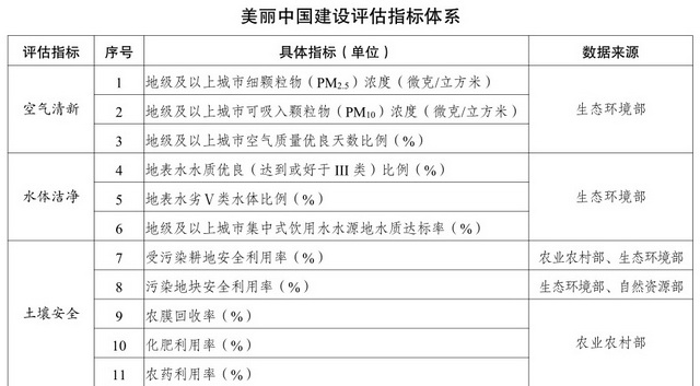 美丽中国是生态文明建设成果的集中体现。根据这份方案,面向2035年,美丽中国要达到“空气清新、水体洁净、土壤安全、生态良好、人居整洁”五项标准,并分类细化到22项具体指标。