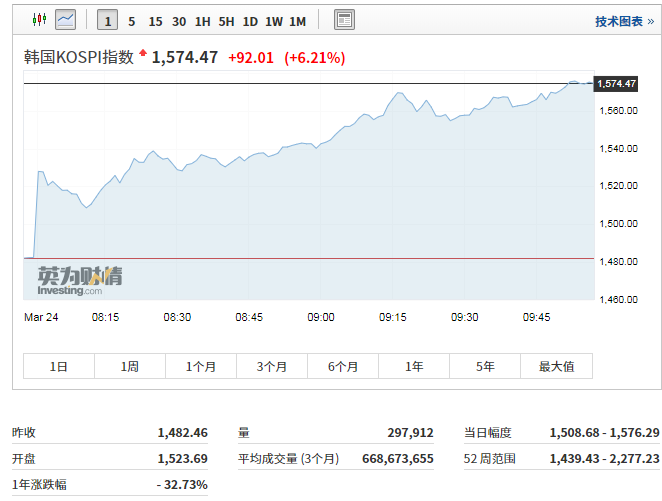 日韩股市大涨。日经225指数高开后持续上涨,截至发稿,日经225指数涨逾6%,韩国KOSPI指数涨逾6%。