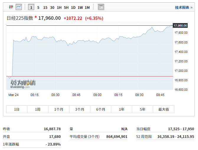 3月24日,全球市场迎来反弹。亚太股市普遍高开,日经225指数期货一度触发熔断机制,暂停交易10分钟。