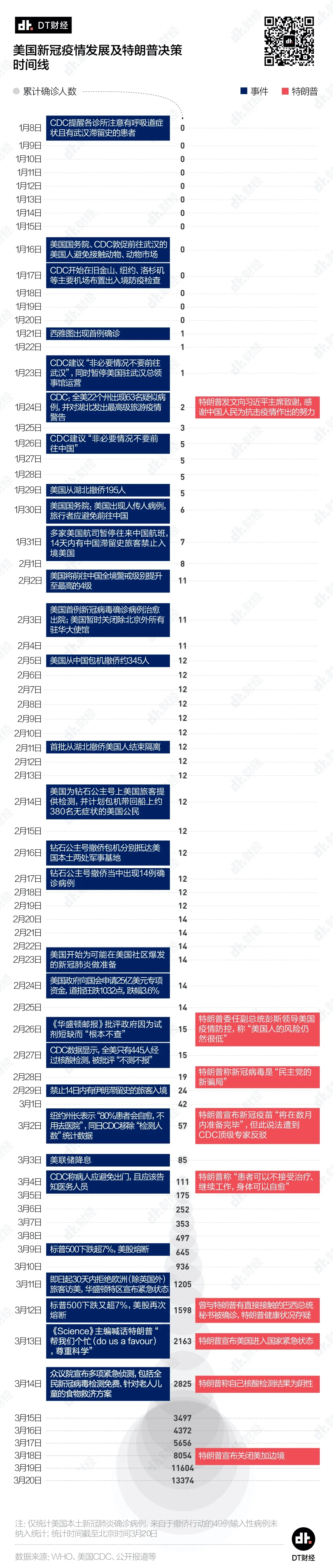 矛盾和扯皮的状态一直持续到3月。截至3月3日,整个美国新冠肺炎确诊人数还停留在两位数,直到3月11日。