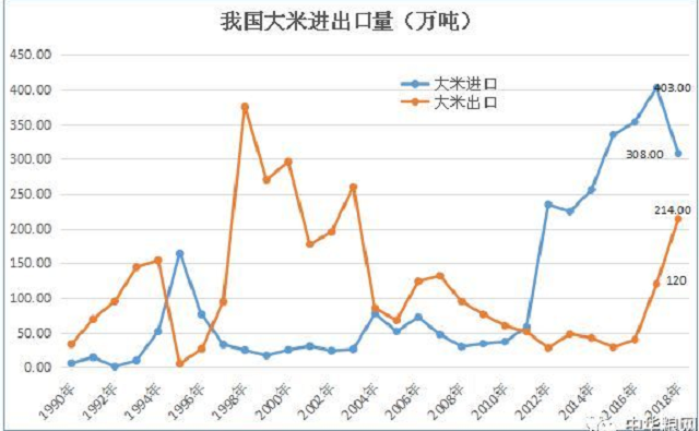 从粮食供给角度,我查到2018年大米进出口数据如下:
