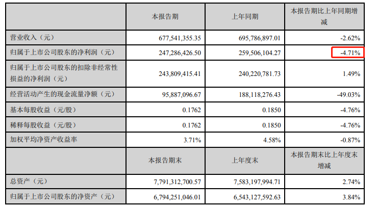 4月7日盘后,两市首份一季报出炉,华兰生物披露一季报显示,一季度公司实现营收6.78亿元,同比下滑2.62%;净利润2.47亿元,同比下滑4.71%;基本每股收益0.1762元。