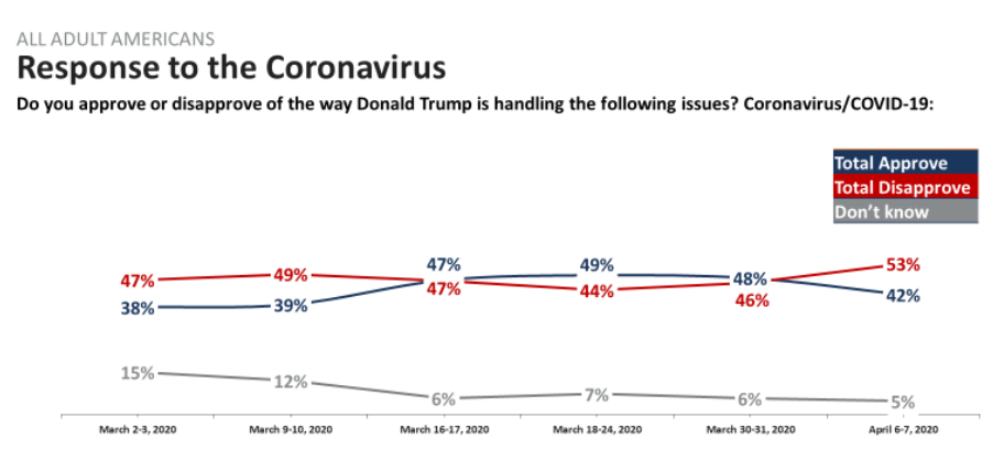 美国NBC新闻9日称,越来越多的美国人对总统特朗普处理新冠疫情的表现表示质疑,他的支持率出现了下滑,最新的主要民调均显示,“危机总统”给特朗普带来的支持率上升只是短暂的。