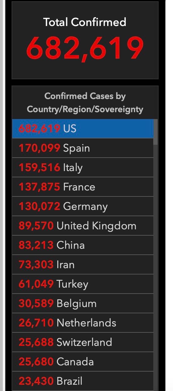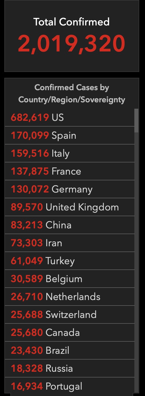 此前因数据出错,网站将全球确诊人数报至200万人以上,美国数据也被误报为682619例。