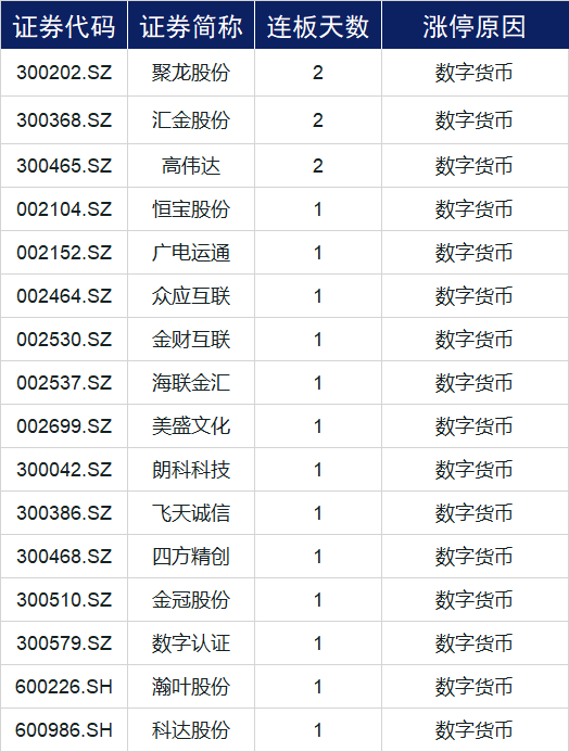 数字货币概念今日掀涨停潮,板块涨幅近7%,聚龙股份(300202.SZ)、汇金股份(300368.SZ)、高伟达(300465.SZ)两连板,恒宝股份(002104.SZ)、广电通运、众应互联(002464.SZ)等个股涨停。有消息显示,央行数字货币首个应用场景将在苏州相城区落地。对此,一位苏州相城区政府部门人士表示,该消息属实,央行数字货币应用确有落地,此前已经收到文件,具体是金融监管局在负责。