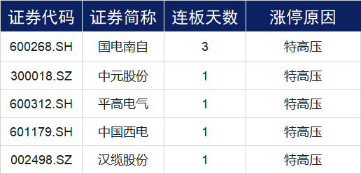 新基建板块今日表现活跃,特高压板块早盘持续拉升,国电南自(600268.SH)三连板,中元股份(300018.SZ)、平高电气(600312.SH)、中国西电(601179.SH)、汉缆股份(002498.SZ)涨停。消息面上,国家电网近期表示,特高压建设全面恢复,截至目前,在建的9条特高压输电通道已经全部复工,正在加速建设,全年建设项目投资规模将达到1811亿元,将有效带动上下游产业发展。