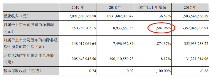 4月22日晚间,星期六发布2019年年报,报告期内公司实现营业收入20.92亿元,比上年同期增长36.57%,归属于上市公司股东的净利润1.5亿元,比上年增长1581.96%;基本每股收益为0.24元,同比增加1100.00%。