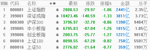 临近五一,市场节前效应逐渐显现,A股三大指数集体下跌,成交量有所萎缩,两市午后维持震荡走弱的态势,三大指数均跌逾1%,沪指一度逼近2800点整数关口,临近尾盘,指数小幅企稳。不过,大盘持续震荡之下,北向资金加仓意愿坚定,午后持续净流入,从盘面上看,行业板块呈现普跌态势,“喝酒”行情持续,白酒板块涨幅居前。