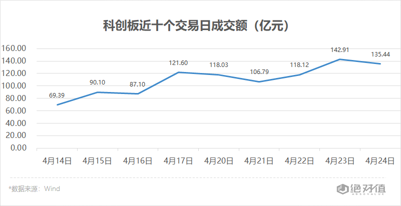 成交额上看,截至收盘,科创板全天成交额135.44亿元,较上个交易日有所收窄。沪硅产业(688126.SH)全天成交额超10亿元,成交额不到1亿元的科创板股票有53家,奥福环保(688021.SH)全天成交额1491.31万元。