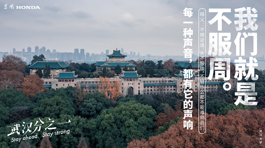 大企的担当和责任,不仅体现在助力经济的复苏,也体现在地域精神的传承。疫情防控期间,武汉虽被迫按下“暂停键”,但武汉人民的战“疫”脚步没有停止,作为“武汉分之一”的各大企业,捐款捐物,企业员工也都纷纷加入抗“疫”大军,守护家园。每个微小的一份子组成一个集体,每个集体发挥的光和热助力武汉的再度崛起,东风本田提出的“武汉分之一”是武汉精神的最好诠释,疫情来临时不服输,疫情退去后铆足劲加油干,追回失去的76天,从个人到集体再到武汉城,已然按下“快进键”。
