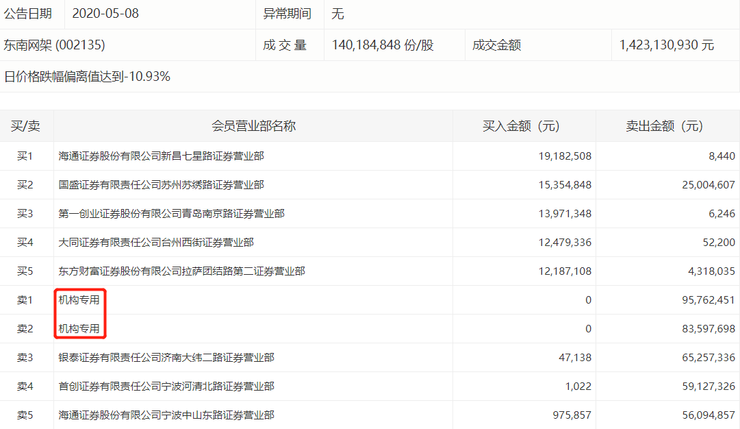 在卖出排行榜上,机构卖出最多的东南网架有2家机构进行了卖出,净卖出金额17936.01万元。