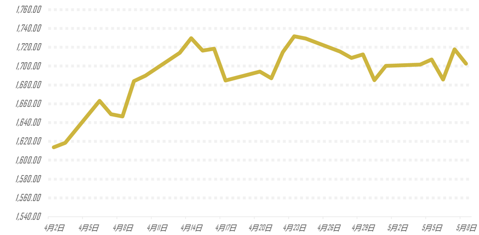 据Kitco周五(5月8日)公布的周度黄金调查结果显示,金价下周或将一骑绝尘。针对11位市场专业人士的调查中,其中有6位专业人士(占55%)预计下周金价将上涨,3位专业人士(占27%)预计金价将下滑,2位专业人士(占18%)持中立态度。