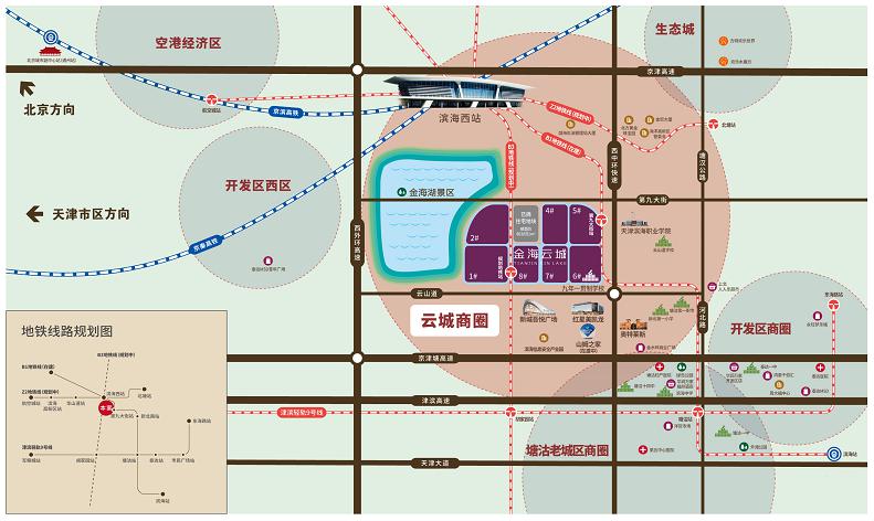 据了解,金海云城由国内领先的智慧产城运营商——紫光海阔集团匠心打造。项目位于天津市滨海新区、800亩金海湖畔,周边1公里范围内,1座滨海西站高铁站,3条地铁线交汇,一座9年制滨海小外,还有奥特莱斯、红星美凯龙、以及在建的吾悦广场、山姆会员店四大商业综合体。奥特莱斯可满足吃喝玩乐购一站式体验;山姆会员店则是天津开设的第二家门店,将为滨海带来全新消费理念;红星美凯龙、吾悦广场集家居、零售、餐饮、巨幕影院和儿童乐园等体验业态为一体。