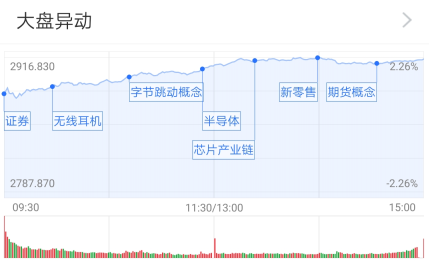 6月1日,两市全天高开高走,喜迎“开门红”。三大指数早盘集体高开,受T+0消息影响,证券板块开盘大涨,带动市场做多情绪升温,题材概念全线开花,无线耳机、字节跳动等板块异动,沪指重新站上2900点。午后,指数延续震荡走高态势,芯片产业链、新零售、期货概念走强,三大指数收盘集体收涨。