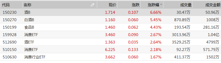 上述相关主题的场外基金有:鹏华中证证券(160633.OF)、易方达证券(502010.OF)公司、招商中证白酒(161725.OF)、银华食品饮料A(005235.OF)、天弘中证食品饮料A(001631.OF)。