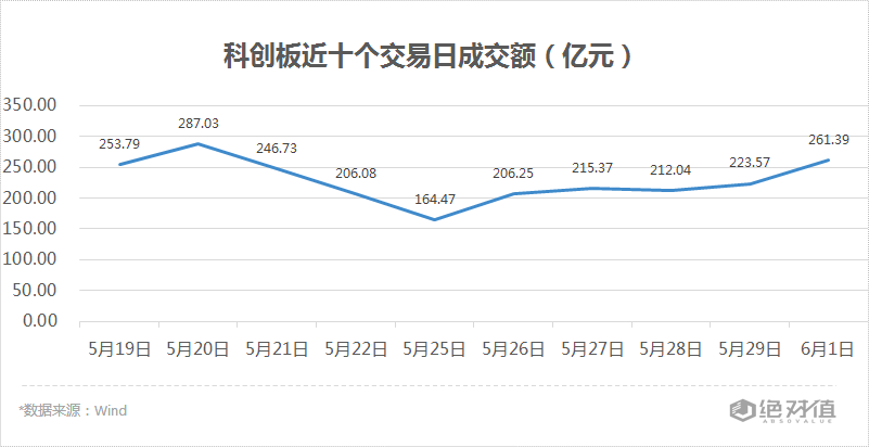 成交额方面,截至收盘,科创板全天成交额为261.39亿元,较上个交易日上涨近17%。