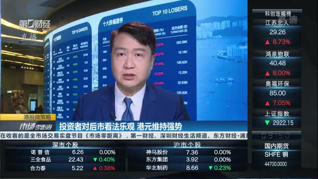 投资者对后市看法乐观,港元维持强势,中概股回流改善港股成分,市场憧憬新经济股纳入恒指.