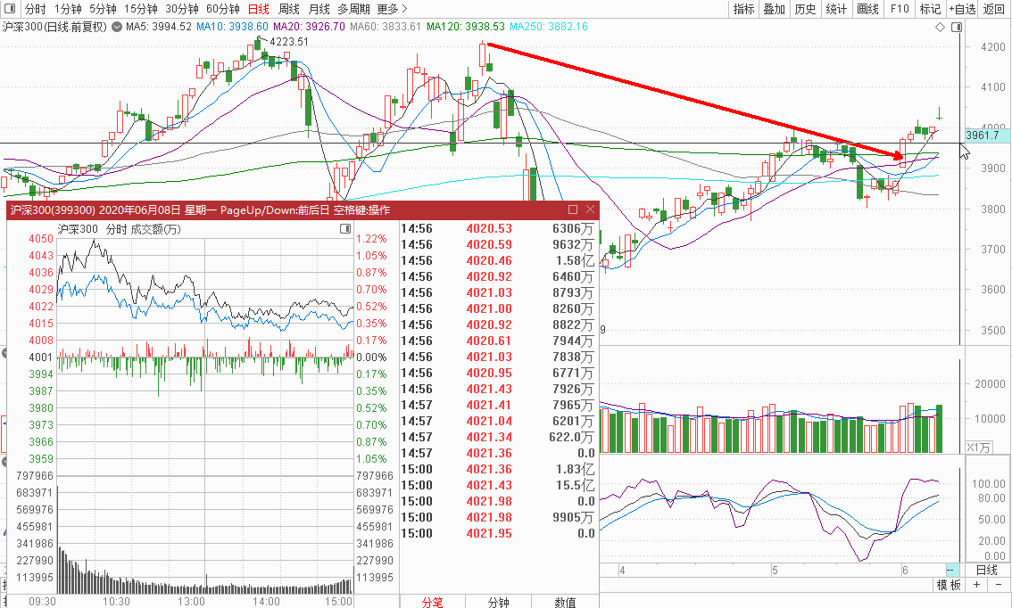 沪深300高开低走但是顽强的拒绝回补缺口,收十字星,很微妙的盘口;